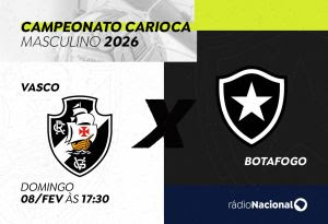 A Rádio Nacional transmite, neste domingo (8), o confronto entre Vasco e Botafogo pela quinta rodada do Campeonato Carioca 2026. A jornada esportiva da emissora tem início às 17h30 e a bola rola às 18h, direto de São Januário, no Rio de Janeiro.