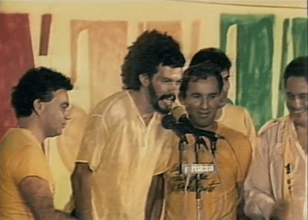 Oswaldo Maciel (à esquerda) teve uma destacada atuação na campanha das Diretas Já, em 1984, ao lado de Sócrates, Osmar Santos e FHC.