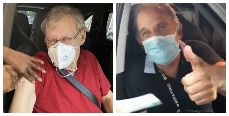 No dia anterior foi a vez de Osmar Santos, simplesmente o Pai da Matéria. Ele foi levado pelo filho Vitor a um posto drive-trhu localizado na Zona Oeste de São Paulo. Animado, ele fez menção à campanha “Vacina Sim”, realizada pelo consórcio de imprensa dedicado à cobertura e conscientização sobre o combate a essa nefasta pandemia. Veja mais aqui.